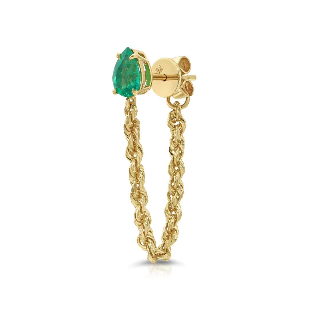 介紹 14K 純金祖母綠梨形繩鏈環耳環- 優雅與自然之美的完美融合。
