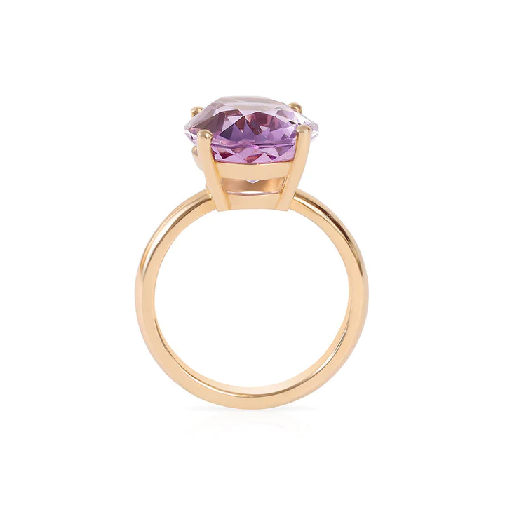 這款 14K 純金雞尾酒戒指俏皮而大膽,以糖果風格的設計鑲嵌一顆鮮豔的紫水晶,充滿樂趣、色彩和優雅。