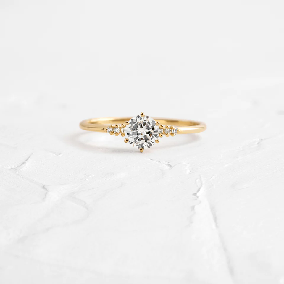 精緻而優雅的罌粟籽戒指採用 0.41 克拉圓形切割莫桑石製成,閃耀著優雅的光芒,非常適合日常佩戴或有意義的時刻。