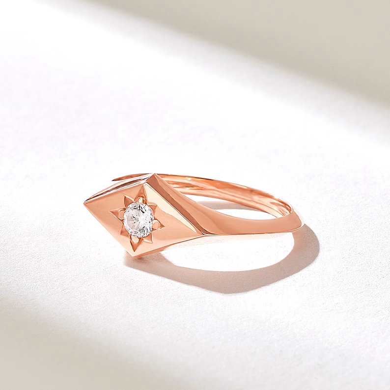 - 產品名稱: 菱形北極星印章戒指 | 14k 純金天體戒指 | 微型鑽石戒指