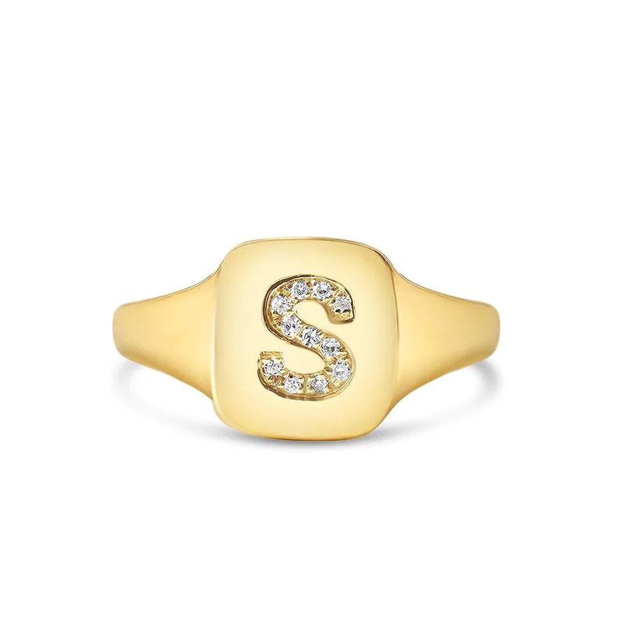 鑽石字母印章戒指是一款極具個性的古董,既能承載個人意義和首字母,又能增添優雅氣質。它採用奢華的14K金打造,不僅彰顯風格,更增添象徵意義。即使是更醒目的字母,也可以鑲嵌鑽石。印章戒指外觀時尚,無論是日常佩戴還是特殊場合,都堪稱完美。