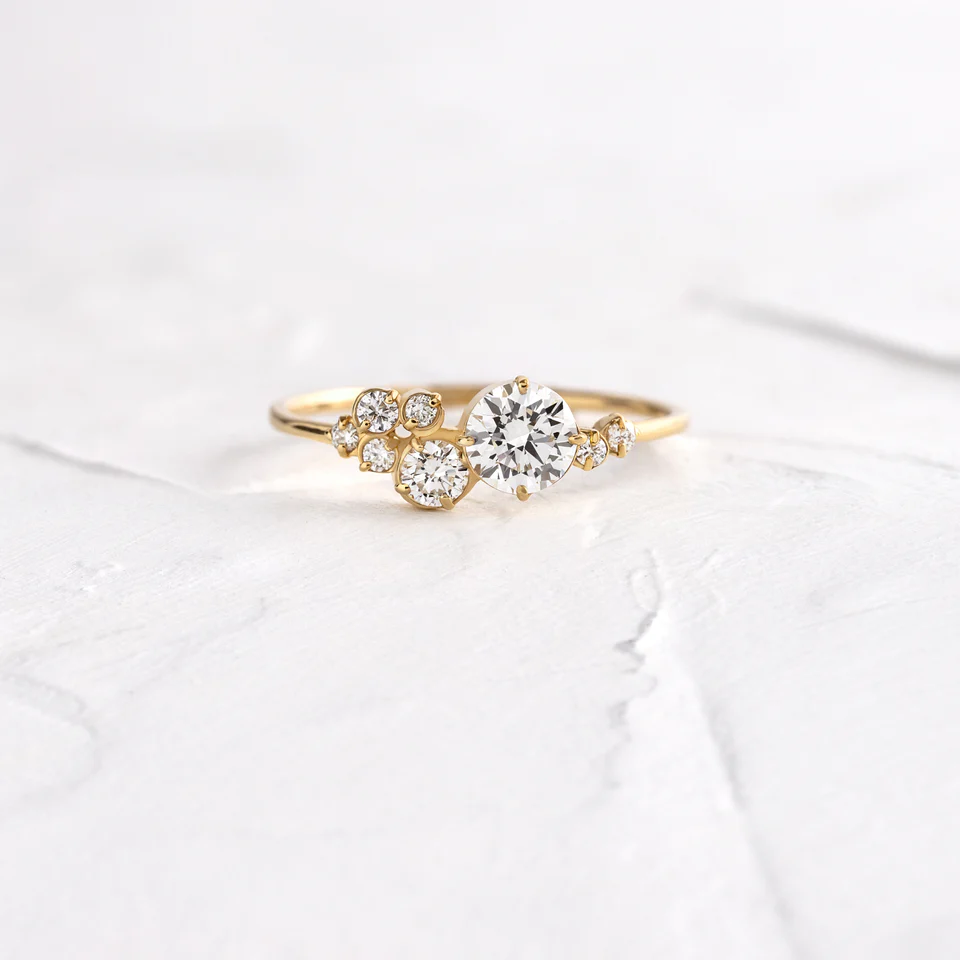 鑽石獨立戒指採用獨特的現代設計,鑲嵌莫桑石鑽石,完美展現其璀璨精緻的個性魅力。