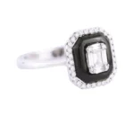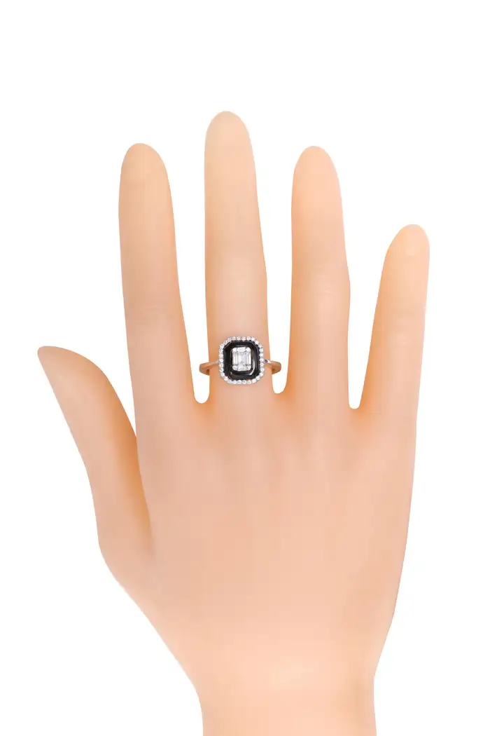一枚精緻的14K金戒指,鑲嵌黑瑪瑙和0.31克拉鑽石。優雅大膽,有白金、玫瑰金和黃金三種顏色可選。是時尚前衛場合的完美選擇。