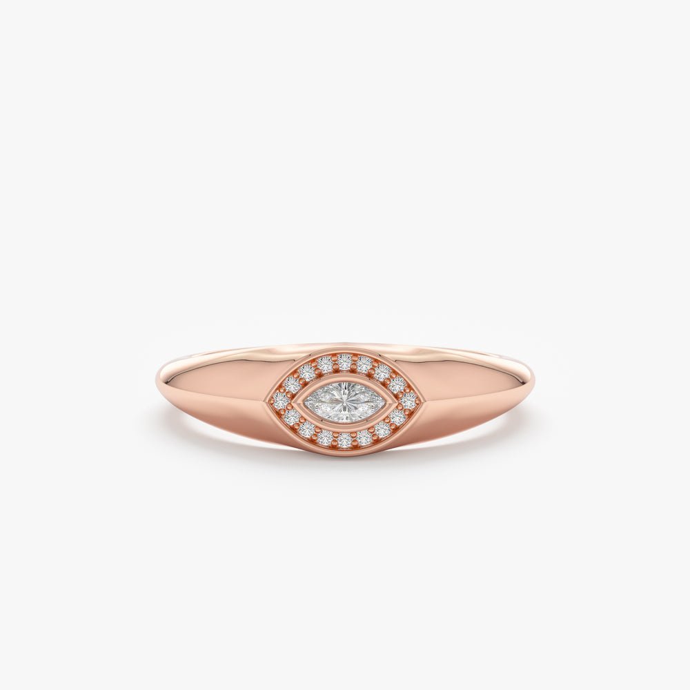 這款印章戒指上的邪眼圖案既時尚又具有護身功效。鑽石的點綴更使其格外醒目。
