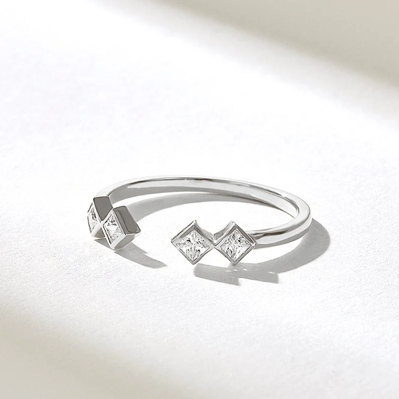 - 產品名稱: 鑽石開口邊框方形戒指 | 公主方形切割鑽石戒指 | 開口結婚戒指