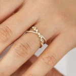 這款戒指採用優質14K金打造,採用十字交叉設計,並鑲嵌著璀璨奪目的莫桑石鑽石。戒指共鑲嵌38顆圓形鑽石,尺寸從1.00毫米到2.20毫米不等,營造出美麗的鑽石簇擁效果,閃耀奪目。戒指上的鑽石顏色等級為D級,淨度達到VVS1,確保了其璀璨的品質。 「X」形設計最寬處為7.5毫米,讓這款戒指既大膽又精緻。微鑲和爪鑲的結合提升了戒指的美感,並確保鑽石不會脫落。