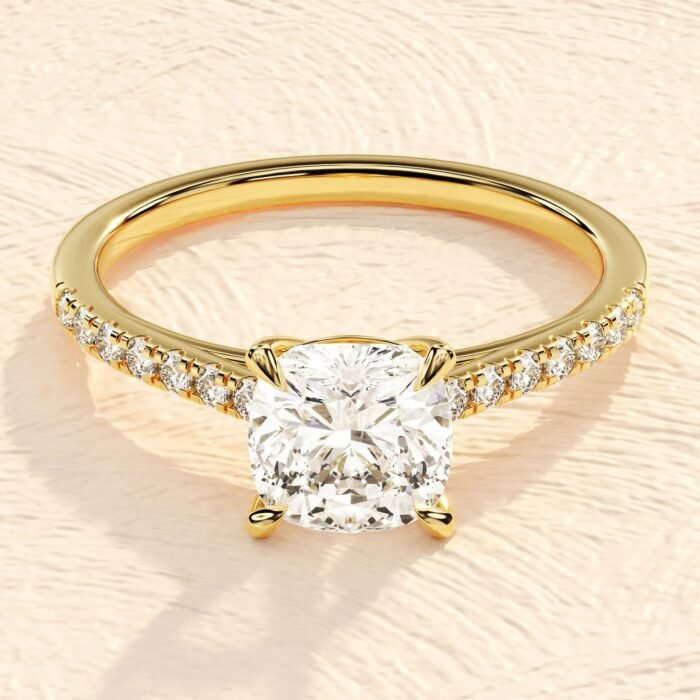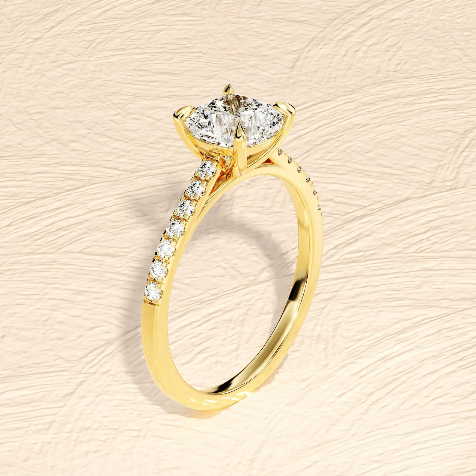 設定在 精緻的 1.50 毫米戒圈 由…製作 14K純金 (可依要求提供 18K),這款訂婚戒指有 玫瑰金、黃金和白金 以適合您的個人風格。 圓形切割莫桑石以其無與倫比的光彩而聞名,使這件作品成為愛情和承諾的非凡象徵。
