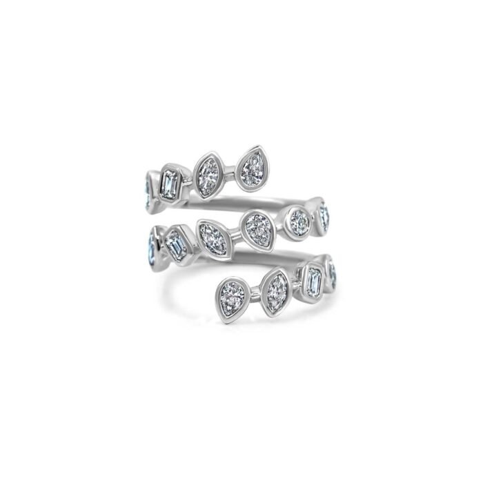 - 設計:環繞式戒指設計使黃金和寶石在手指周圍連續流動,呈現出優雅迷人的外觀。