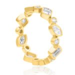 這款戒指的獨特設計融合了多種鑽石形狀,每一顆都經過精心挑選,營造出動感十足的現代美感。各種切割的鑽石與戒圈渾然一體,呈現出形狀與光影交相輝映的迷人效果。
