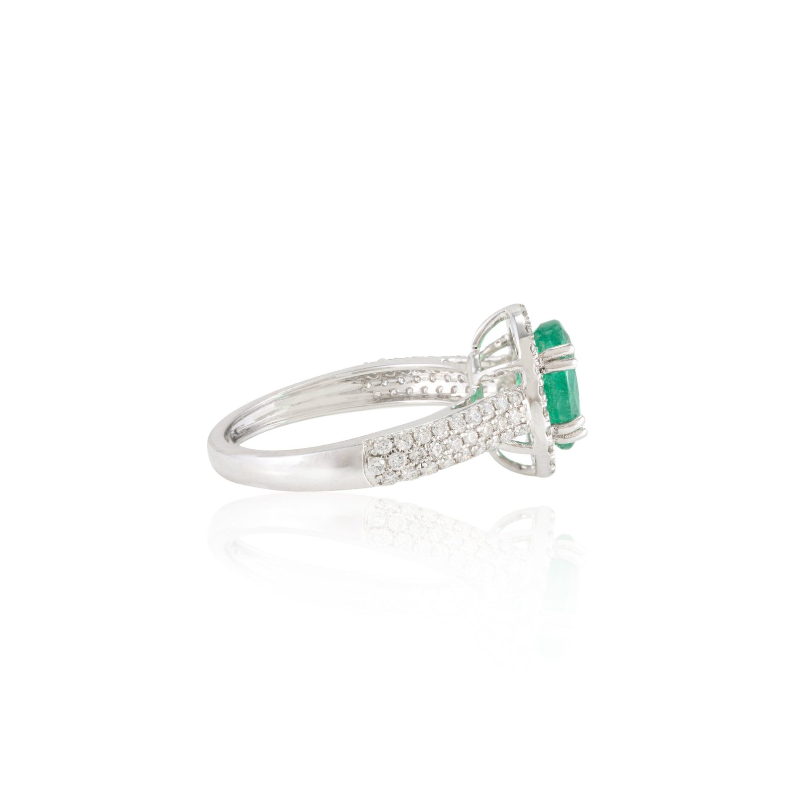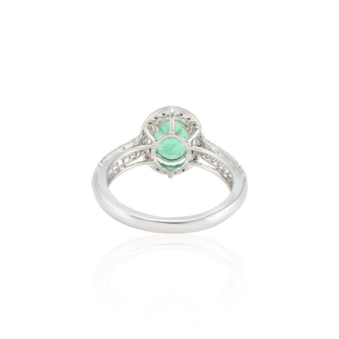 這 14K純金祖母綠鑽石訂婚戒指 這款令人驚豔的戒指完美融合了祖母綠的璀璨魅力與鑽石的雋永優雅。這款戒指採用14K純金打造,鑲嵌一顆迷人的橢圓形祖母綠,尺寸為6.6 x 8.8毫米,總重1.59克拉。祖母綠濃鬱的綠色與白金的冷色調相得益彰,營造出和諧奪目的視覺效果。