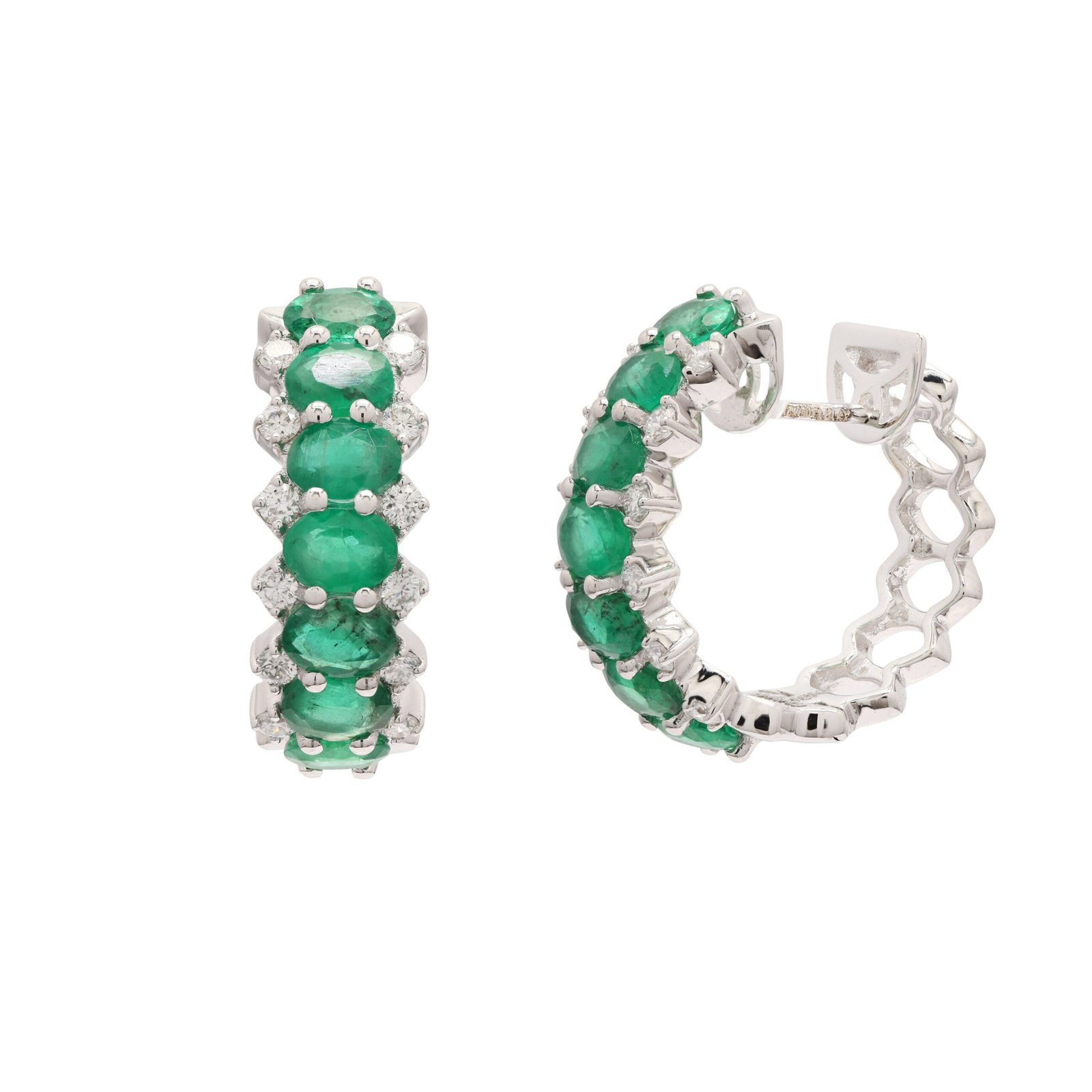 耳環重5.678克,結實舒適,適合日常佩戴和特殊場合。環狀設計增添經典韻味,祖母綠與鑽石的搭配更顯奢華奪目。