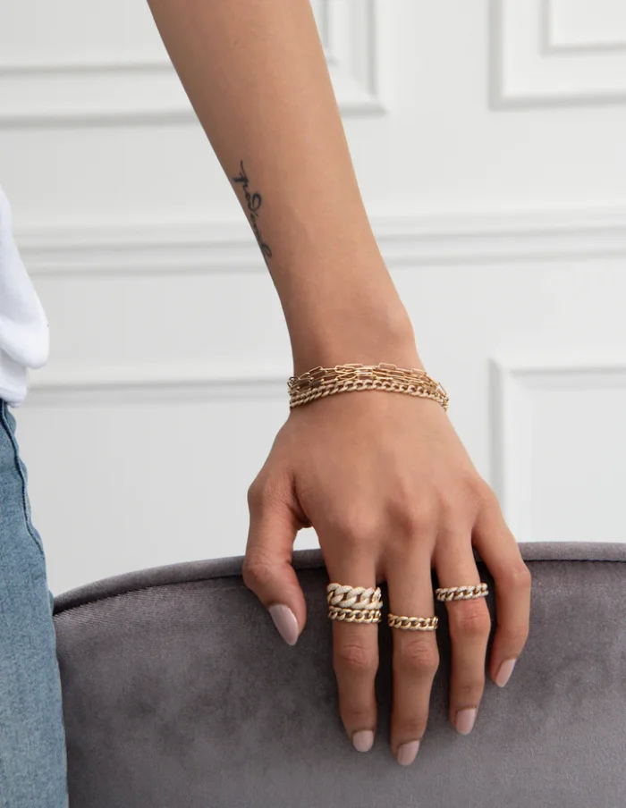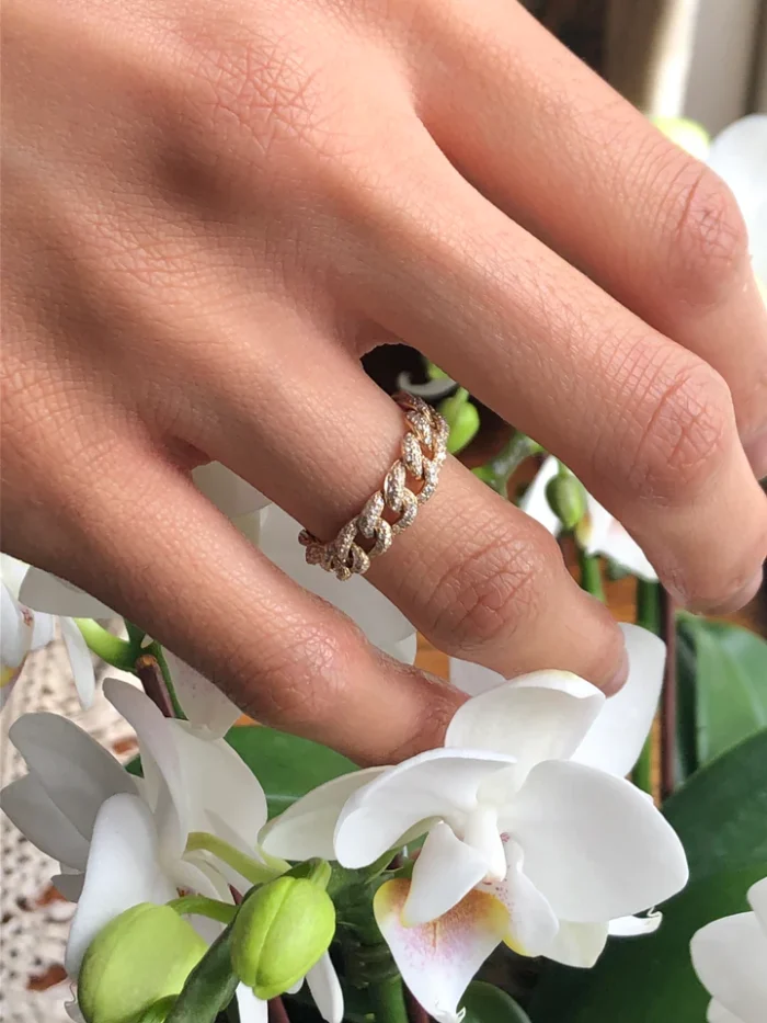 這款戒指既可與其他大膽的款式疊戴,也可單獨佩戴,成為令人驚豔的焦點。無論您是想打造時尚夜生活,還是提升日常造型,這款鑲鑽鏈環戒指都能讓您留下獨特的印象。