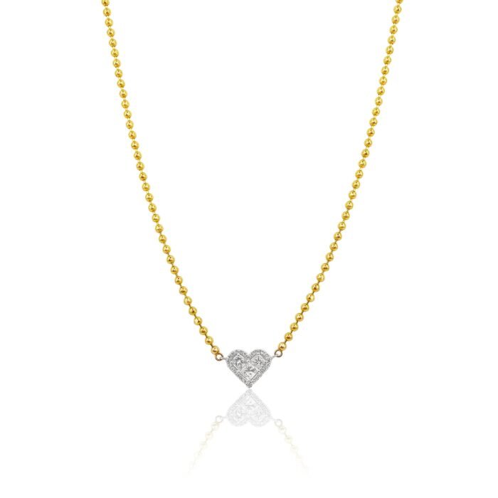 隆重介紹這款14K金鑽石心形球鍊項鍊,這款精緻的單品可為任何造型增添一抹優雅魅力。這款項鍊採用優質14K金打造,心型吊墜將實驗室合成鑽石的璀璨光芒完美展現。