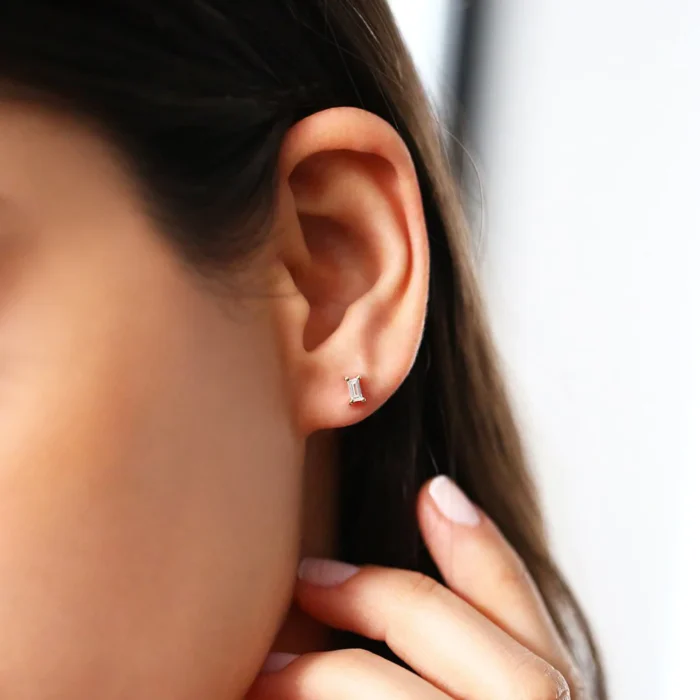 透過我們的 14K金長方形切割莫桑石鑽石耳環,精緻與輝煌的永恆融合。 14K純金,這些精美的耳環有 白金、玫瑰金和黃金,讓您選擇最適合您風格的搭配。