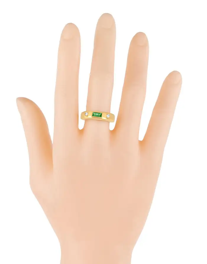 奢華的 14K 純金戒指,鑲有 0.43 克拉鑽石和鮮豔的祖母綠,設計優雅永恆。