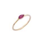體驗這枚令人驚豔的戒指的永恆之美與奢華,讓它成為您珠寶收藏中的珍品。精美的欖尖形紅寶石與高品質黃金戒圈的完美結合,成就了一件值得珍藏多年的珍品。