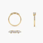 這款精緻的戒指由五顆心形鑽石製成,每顆直徑3毫米,鑲嵌於優質14K純金之上。此外,戒指上還密鑲了10顆圓形鑽石,每顆直徑1.3毫米,更添璀璨奪目。戒指總鑽石重量0.70克拉,鑽石顏色等級為D色,淨度等級為VVS1,展現出頂級的品質和閃耀光芒。無論是出席特殊場合,還是作為一份貼心禮物,它都是完美的點睛之筆。