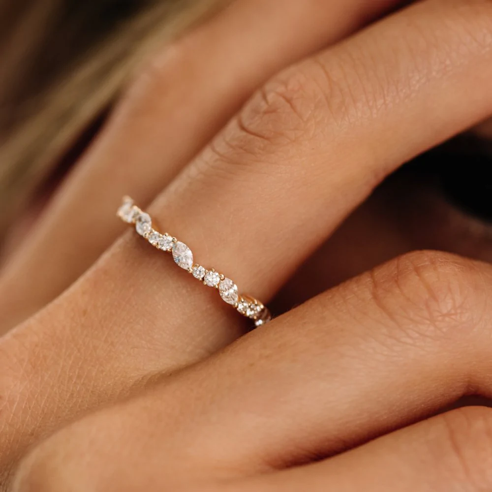 14k 欖尖形簇狀可疊戴結婚戒指