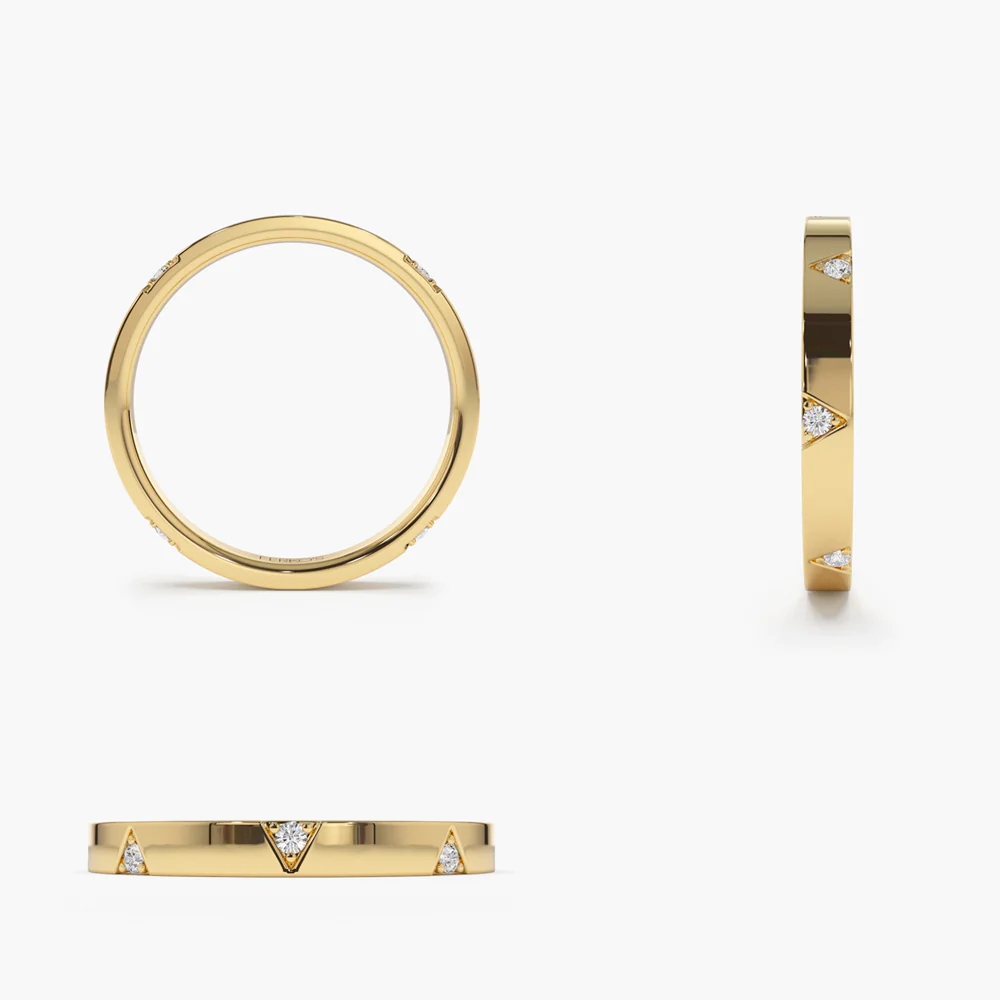 這款精緻的戒指採用優質14K純金打造,鑲嵌一排圓形莫桑石鑽石,每顆直徑1.45毫米。戒圈上共鑲嵌8顆鑽石,無論從哪個角度看都閃耀奪目,無論是特殊場合還是日常佩戴,都堪稱完美。