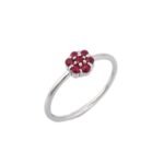 這枚白金紅寶石戒指上的花卉圖案精緻美麗,非常適合日常佩戴。