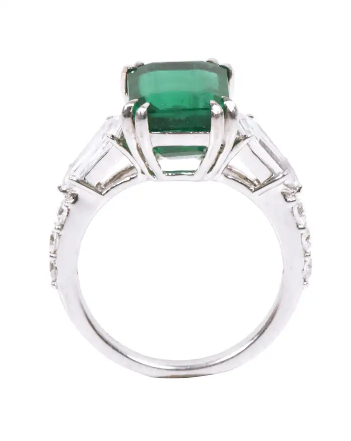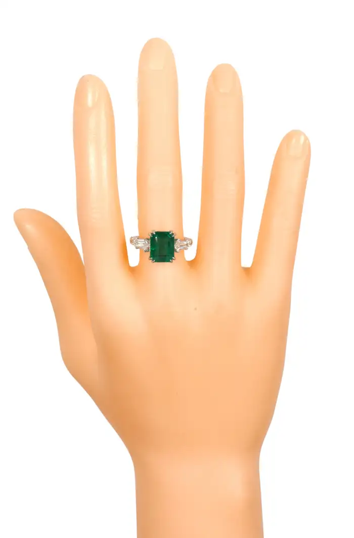 14K純金6.24克拉實驗室培育鮮綠色祖母綠和鑽石雞尾酒戒指