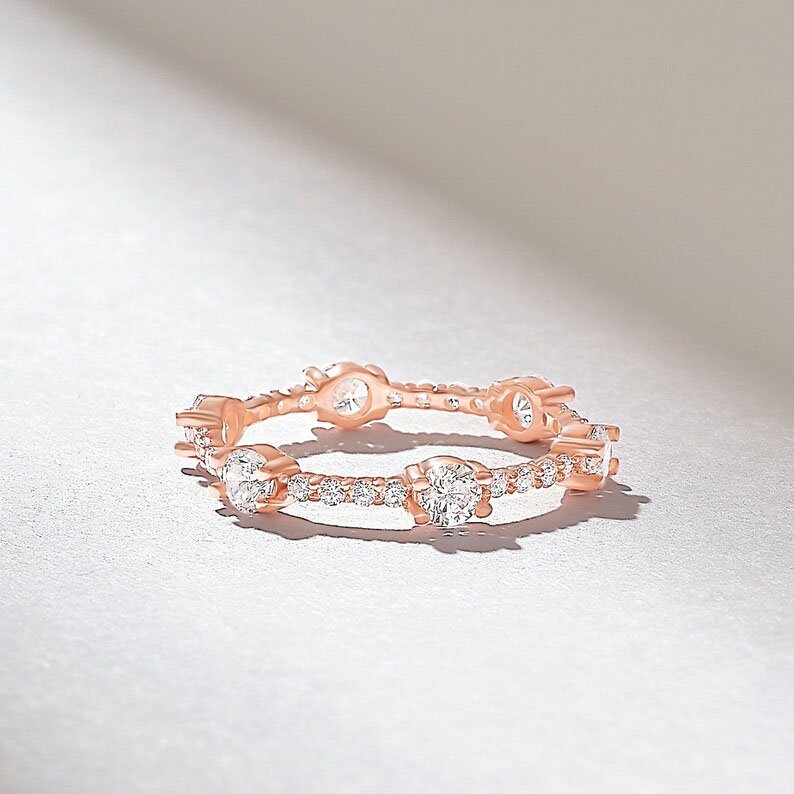 14k 純金密鑲天然鑽石泡泡永恆戒指:無限結婚戒指,1.30 克拉