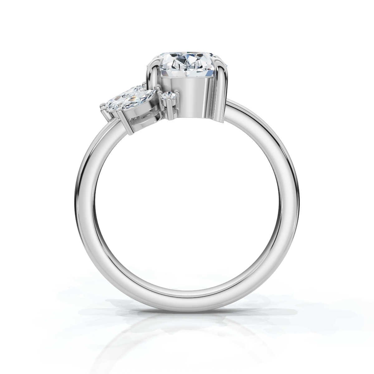 - 側石: 0.36 克拉圓形與欖尖形莫桑石鑽石(D 顏色,VVS1 淨度)