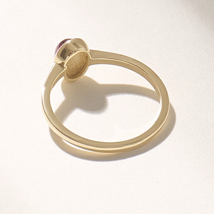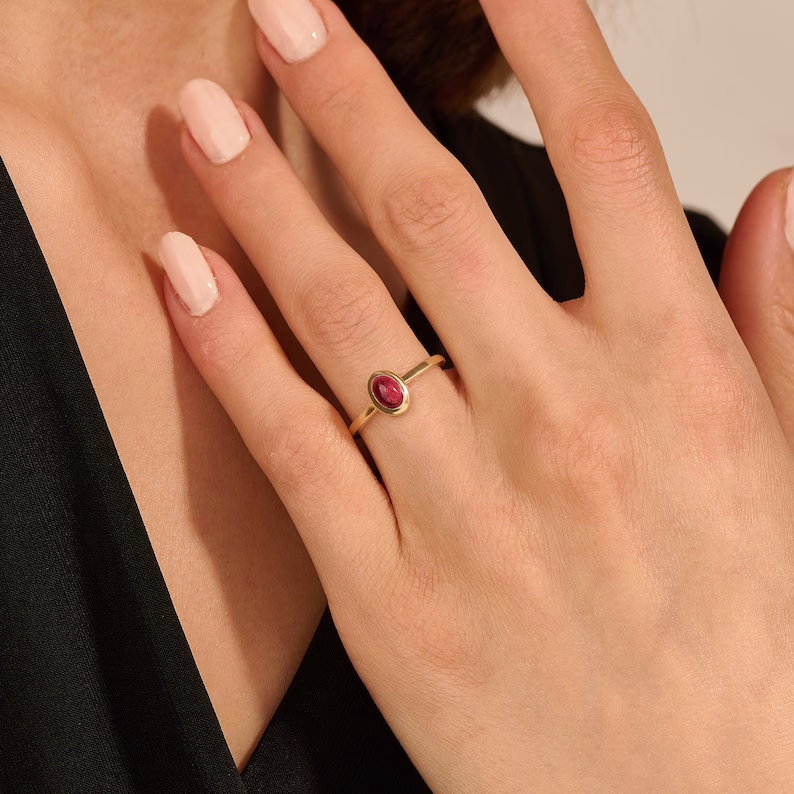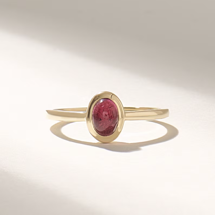 優雅的 14K 純金單石戒指,鑲嵌一顆鮮豔的紅色碧璽——具有永恆的魅力、大膽的色彩和精緻的美感。
