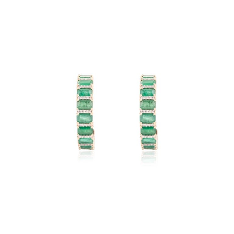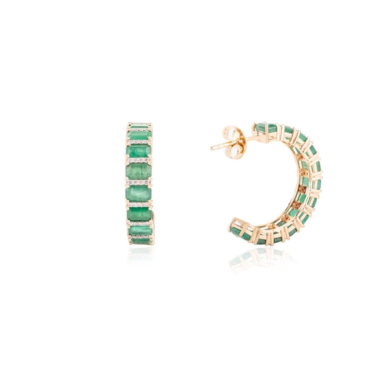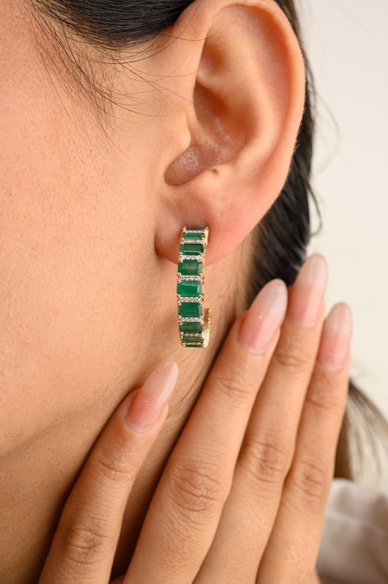 沉迷於 14K 純金祖母綠鑽石大圈耳環,鮮豔的祖母綠與閃耀的鑽石完美融合,為您的耳朵增添優雅與魅力。