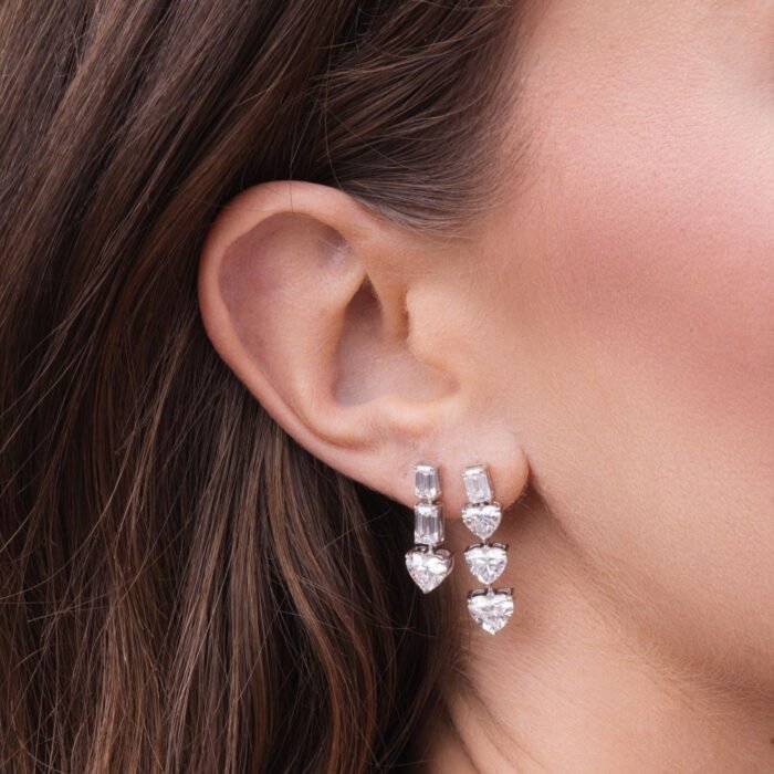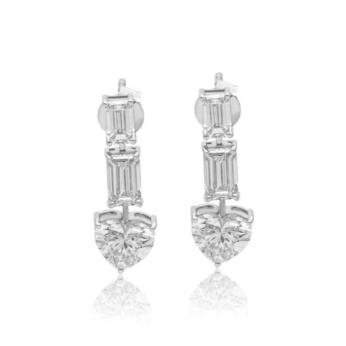 這些耳環設計迷人,具有令人驚嘆的 瀑布效應, 和 2.38克拉長方形切割莫桑石鑽石 優雅地層疊而下,令人嘆為觀止 1.47克拉心形莫桑石鑽石 最後。隨著 D 顏色和 VVS1 淨度每顆鑽石都經過精密切割,以最大限度地提昇亮度和火彩,確保每個移動都閃耀著無與倫比的光芒。