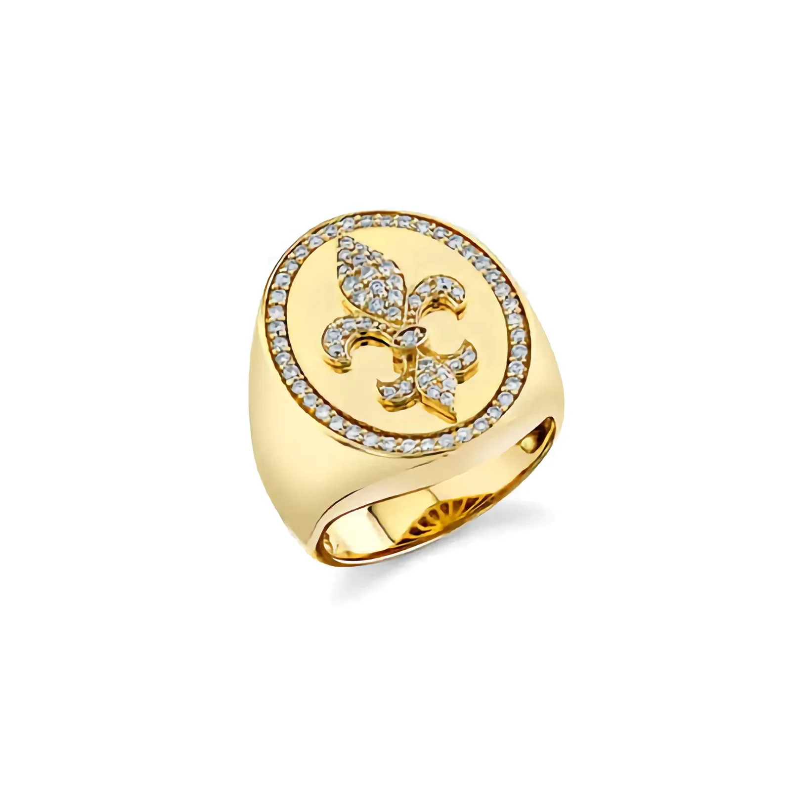 14k金鑲鑽大鳶尾花印章銀戒指,將經典與奢華完美融合,提升您的風格。這款戒指精雕細琢,細節之處彰顯非凡,綴以璀璨鑽石,點綴大號鳶尾花圖案,展現精緻優雅。