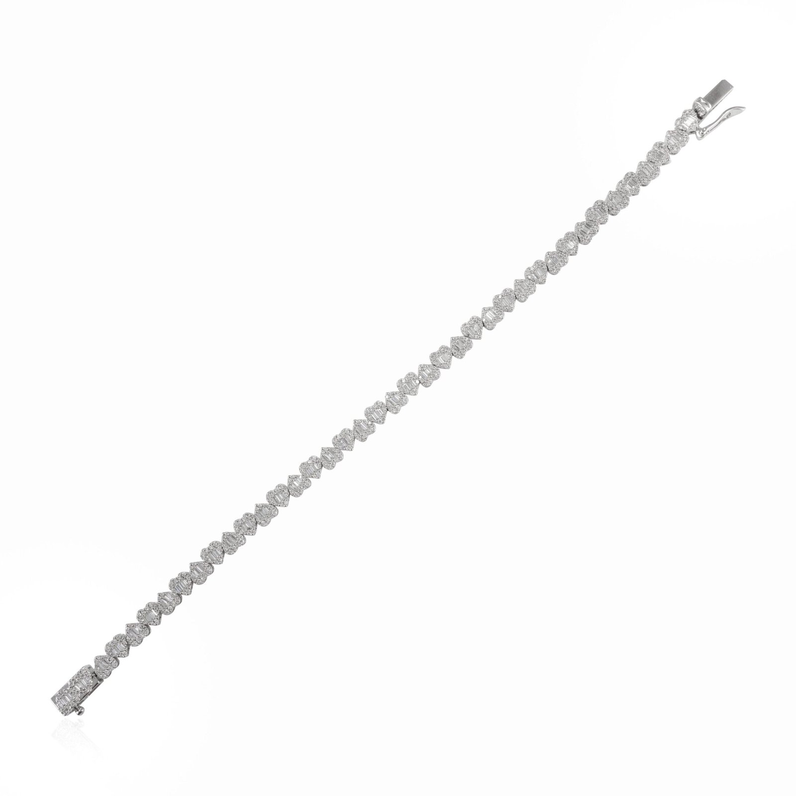 18k 白金鑽石心形手鍊是一款奢華的配件,體現了永恆的美麗和優雅的精髓,可提升您的風格。