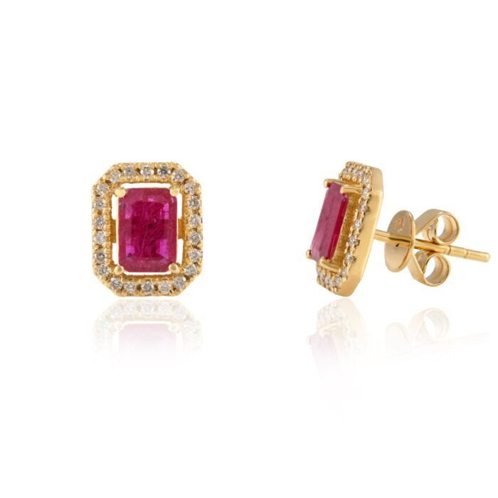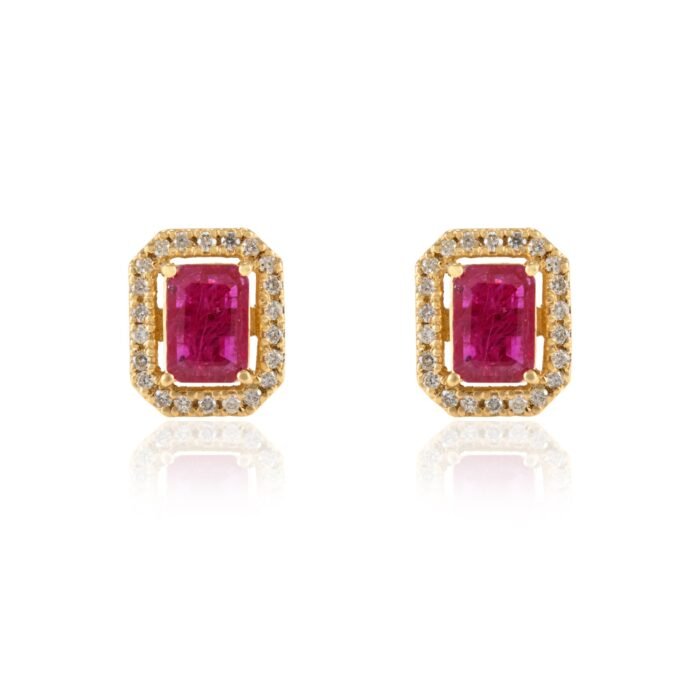 18k 純金八角形紅寶石光環鑽石耳環可提升您的風格,這款奢華配件可捕捉永恆美麗和優雅的精髓。