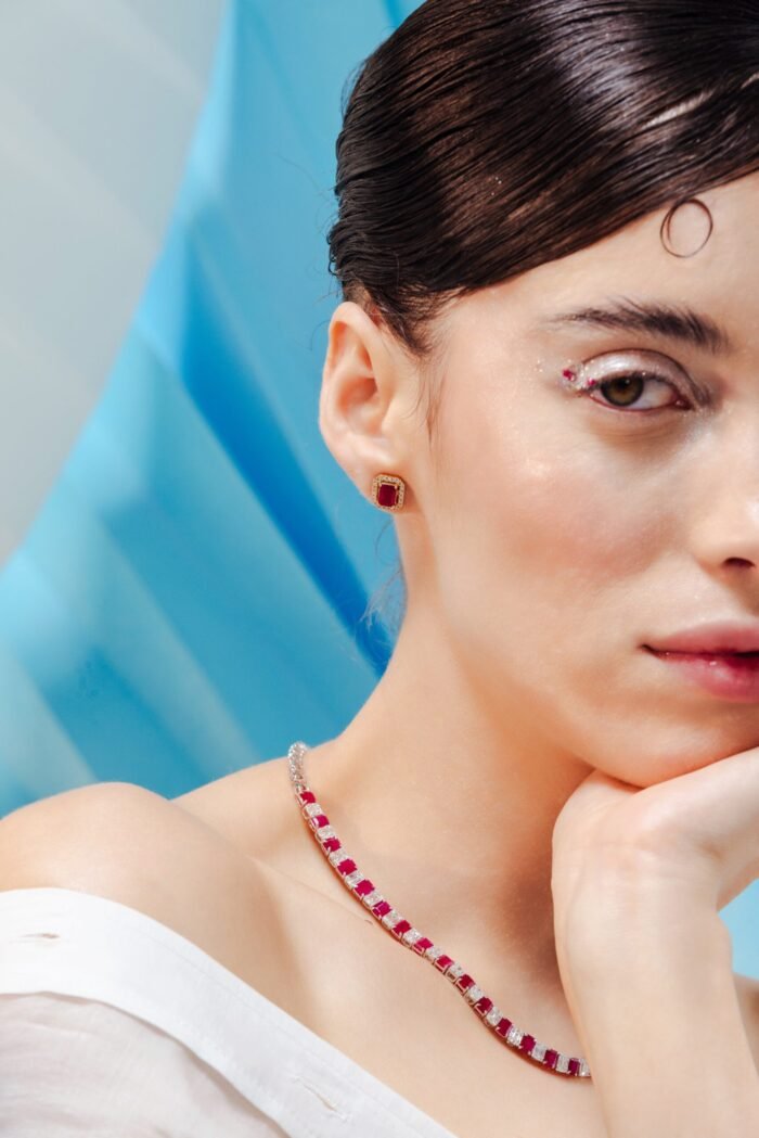 每顆紅寶石周圍環繞著一圈璀璨奪目的鑽石,總重0.28克拉。每顆直徑1.5毫米的鑽石均採用爪鑲工藝精心鑲嵌,以凸顯其自然光彩,為耳環增添一抹璀璨光彩。璀璨的紅寶石與璀璨的鑽石光環相映成輝,散發出令人驚豔的對比,散發出精緻迷人的氣質。