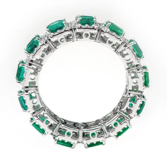 奢華的 18k 純金永恆戒指,交替鑲嵌天然祖母綠和鑽石,是永恆而優雅的愛情象徵。
