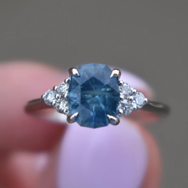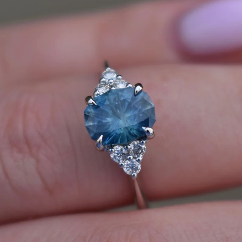 - 主石: 天然蒙大拿藍寶石橢圓形,約 1.5-1.8 克拉