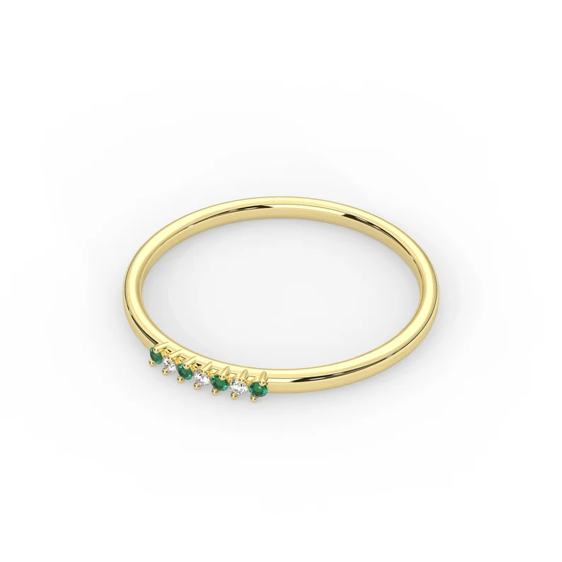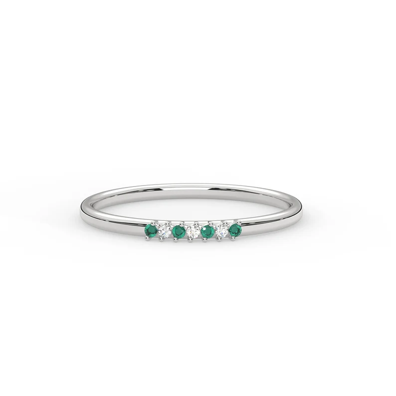 光滑的設計和璀璨的祖母綠使這枚結婚戒指成為優雅和承諾的象徵,非常適合您的特殊日子。