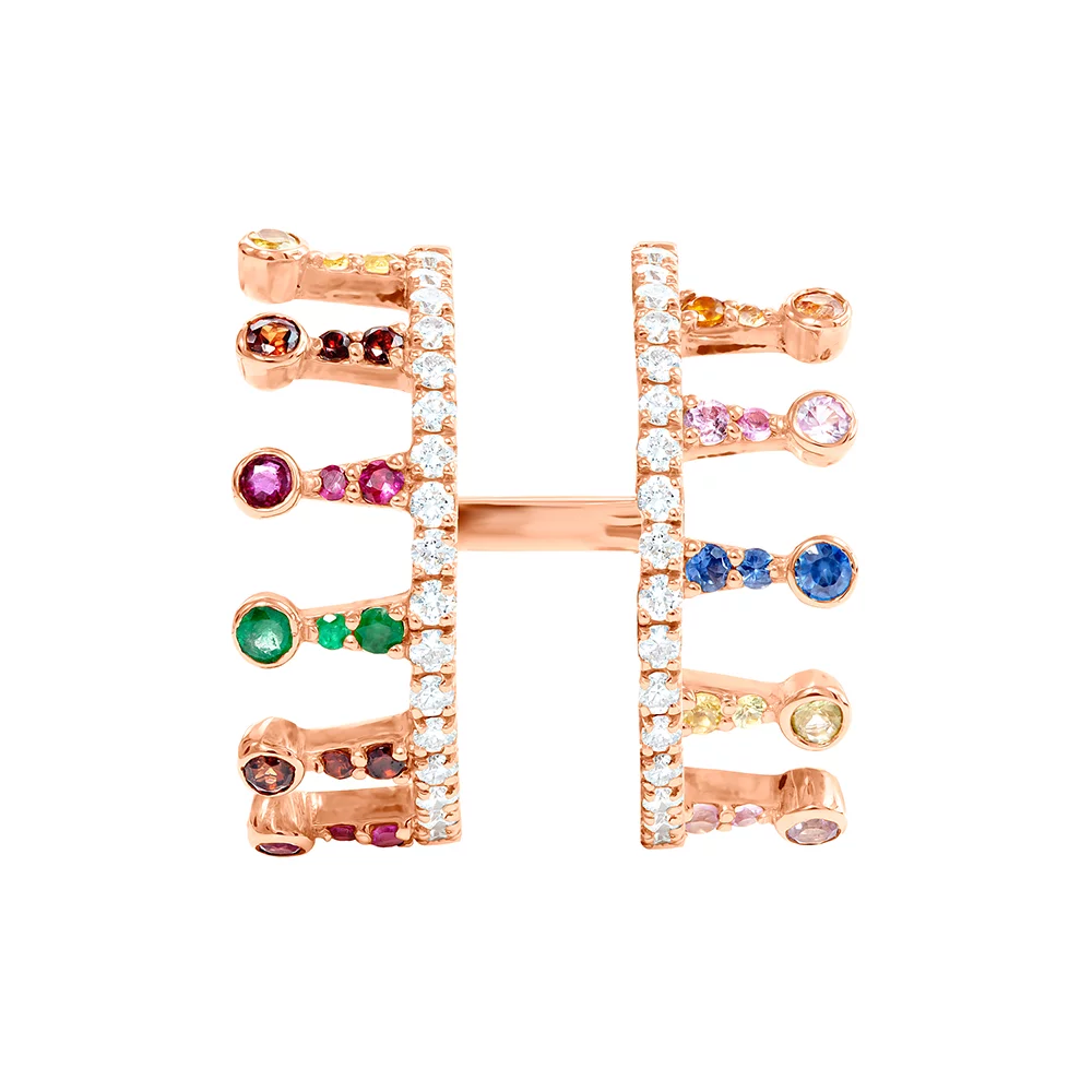 這 18k 純金節日皇冠戒指 鑽石和彩色藍寶石的組合展現出極致的華麗。