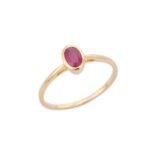 優雅的 18k 純金戒指,鑲嵌一顆璀璨的紅寶石——設計旨在展現永恆的美麗、鮮豔的色彩以及輕鬆的日常精緻。