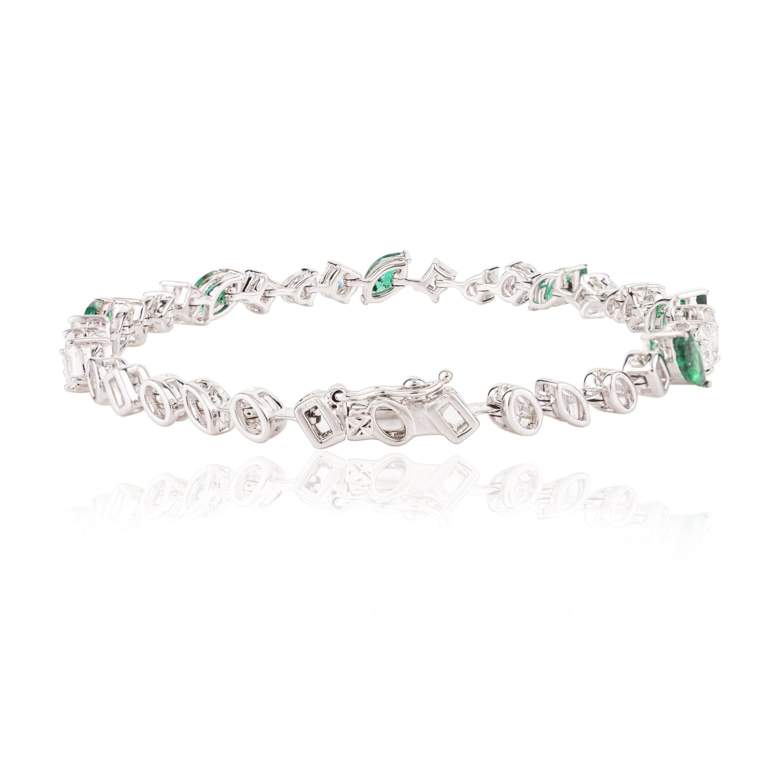 18k純金華麗祖母綠與鑽石網球手鍊