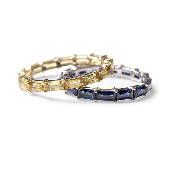 戒圈上鑲嵌著切割完美的黃水晶,更添其自然的光芒與火彩。長階梯形切割的黃水晶環繞戒圈,形成一圈璀璨奪目的色彩,象徵永恆。