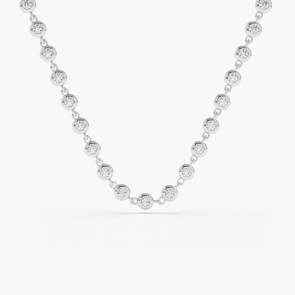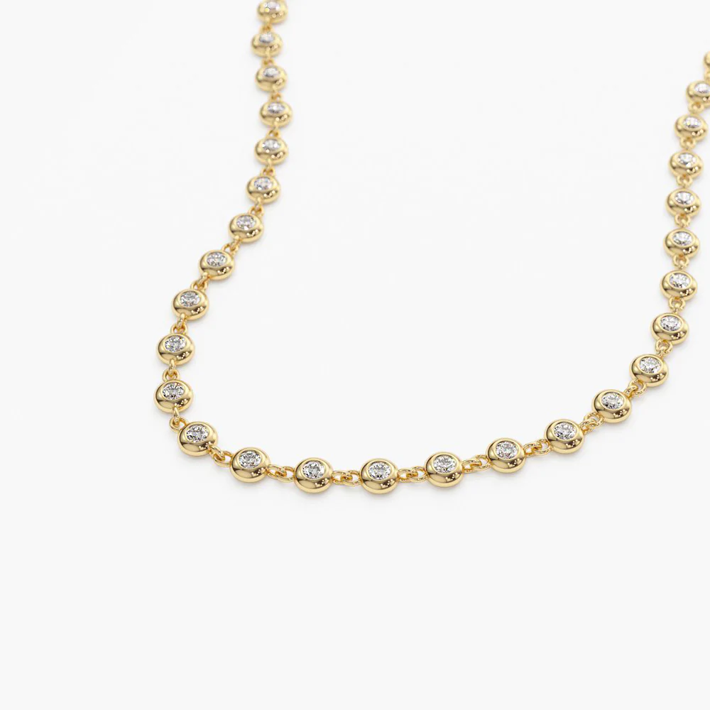 這款項鍊採用18K純金打造,奢華質感與堅固耐用相得益彰,堪稱珍藏多年之作。包鑲工藝將每顆鑽石牢牢固定,更顯其自然美感,打造時尚現代的造型。無論是出席特別活動,還是日常佩戴,這款項鍊都能為任何造型增添一抹優雅氣質。