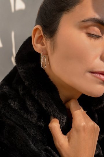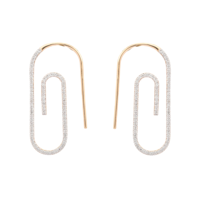 這款耳環採用18K純黃金打造,溫暖奢華的背景襯托出鑽石的璀璨光芒。回形針的設計為經典的環狀耳環增添了現代氣息,打造出時尚精緻的外觀。此設計選擇讓這款耳環百搭百搭,可搭配各種造型,從休閒日裝到正式晚裝,應有盡有。