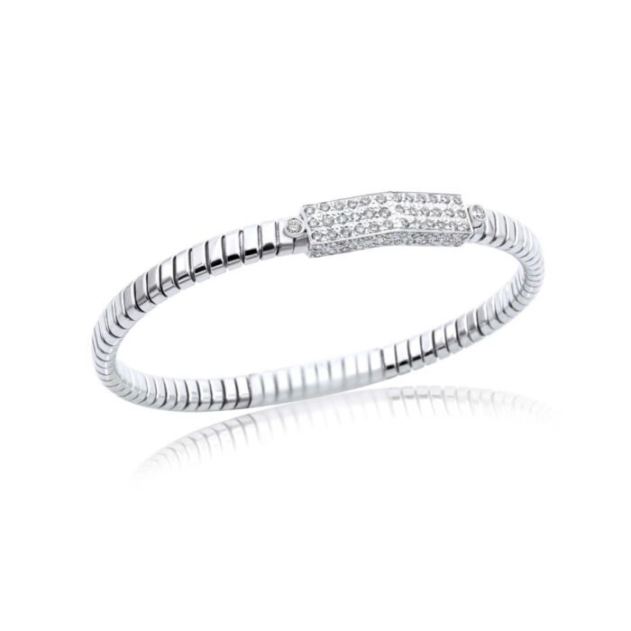 - 設計: 靈活的矩形手鐲,密鑲莫桑石鑽石