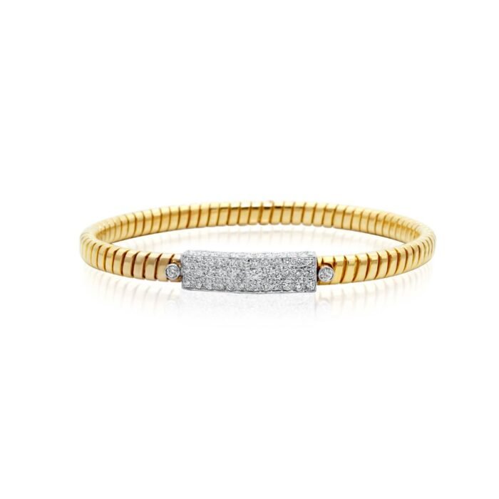 18k金柔性密鑲莫桑石鑽石矩形手鐲
