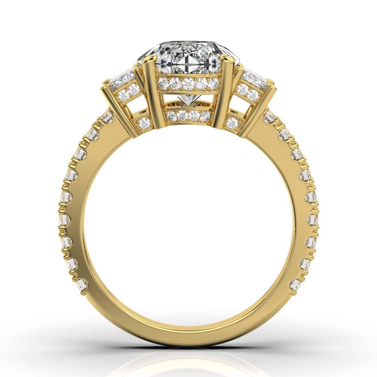 這款 18k 純金戒指鑲嵌著三顆祖母綠形莫桑石鑽石,線條流暢,光彩奪目,是永恆愛情的象徵。