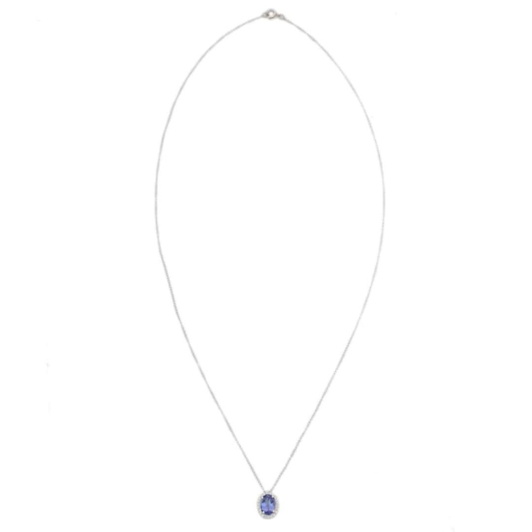 探索 18k 純金坦桑石吊墜項鍊 這款奢華的項鍊以奪目的坦桑石和璀璨的鑽石打造,令人沉醉其中。這款項鍊採用精美的18K純黃金打造,鑲嵌一顆1.73克拉的橢圓形坦桑石,令人心動不已。這顆坦桑石以其深邃的藍紫色澤和非凡的淨度而聞名,尺寸為9 x 7毫米,是優雅精緻的焦點。