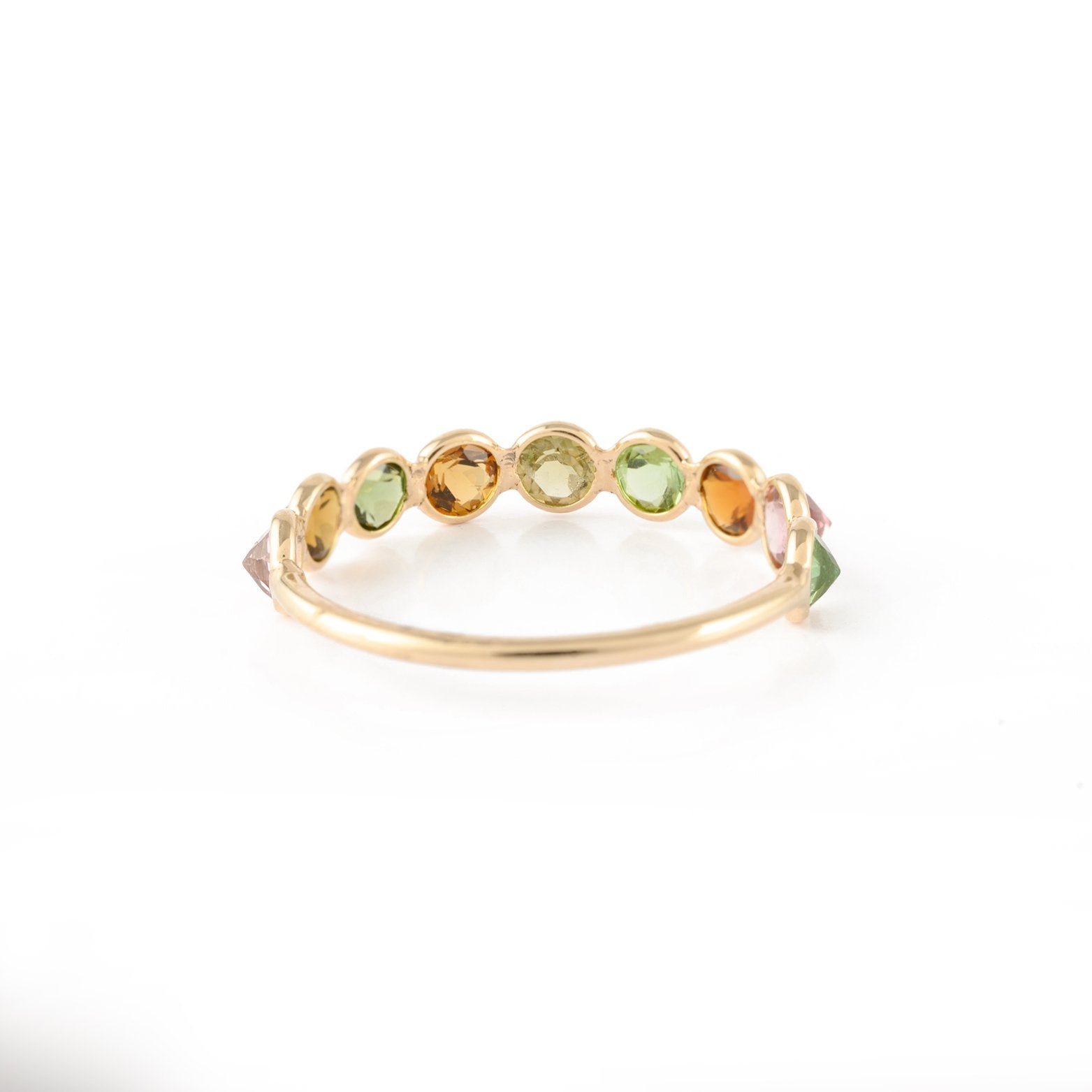 這 18k 純金多顆碧璽半永恆戒指 是一款精美的珠寶,散發著活力四射的優雅氣質。這款戒指採用18k純金打造,戒托精緻耐用,寬度僅1毫米,配戴舒適,展現精緻美感。