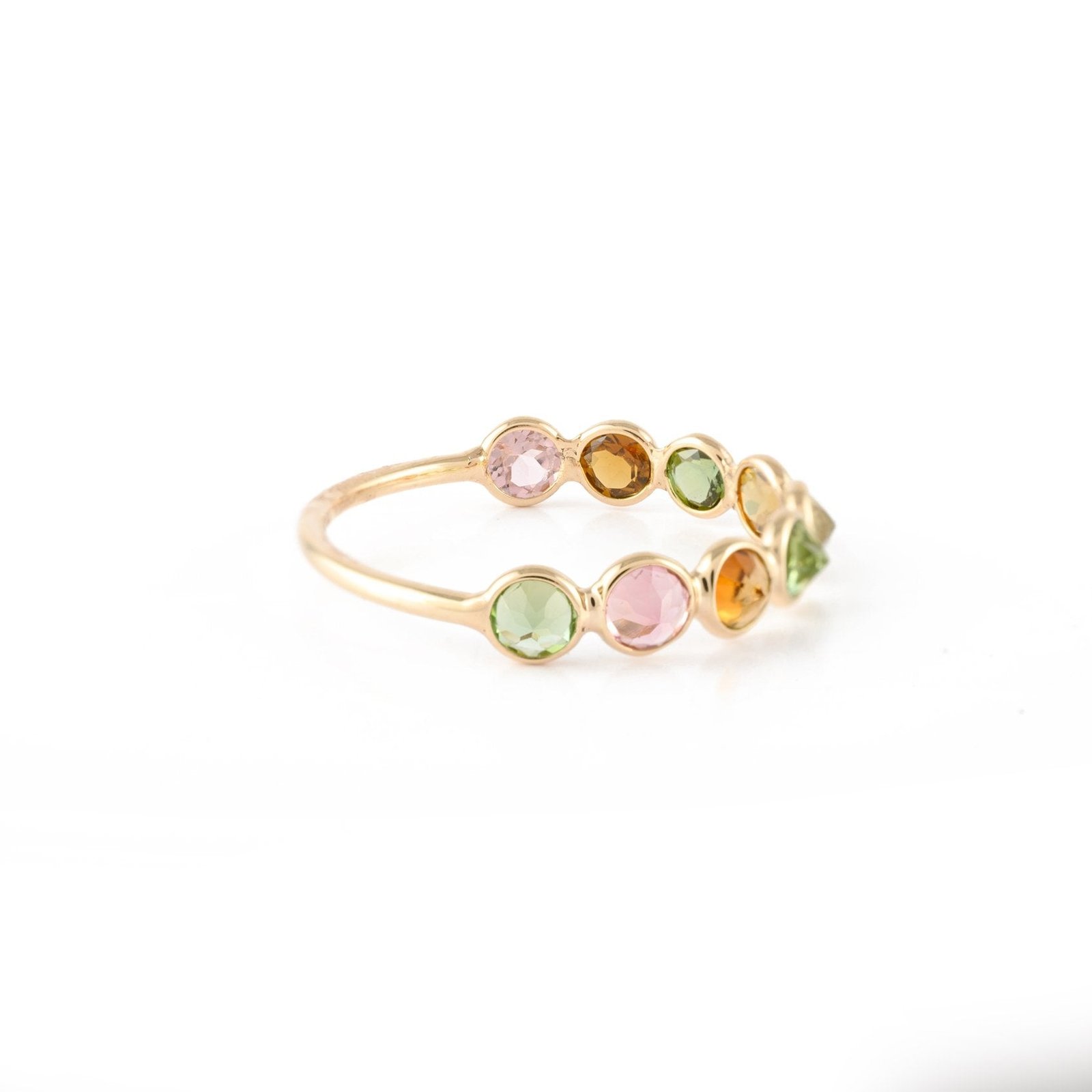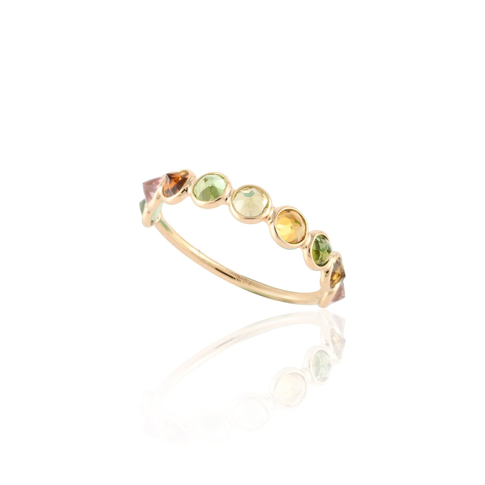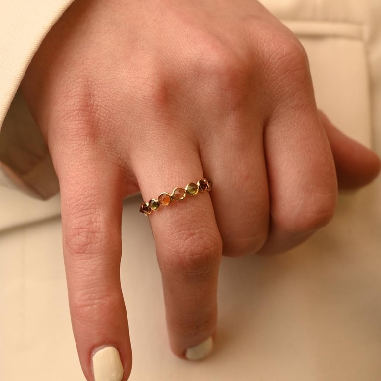 色彩繽紛的 18k 純金半永恆戒指,鑲嵌著鮮豔的多色碧璽——專為歡愉的優雅、閃耀和日常魅力而打造。