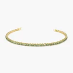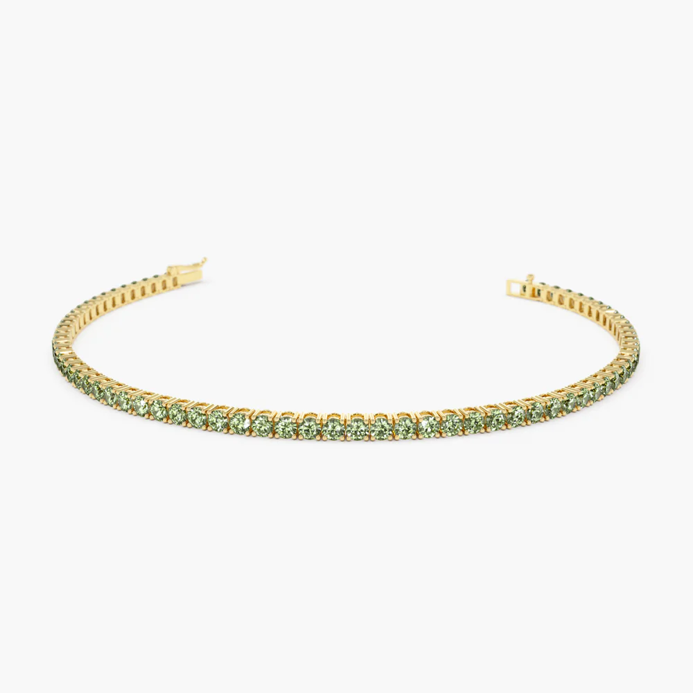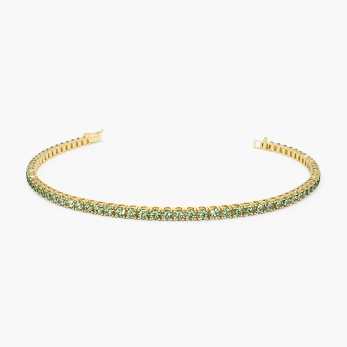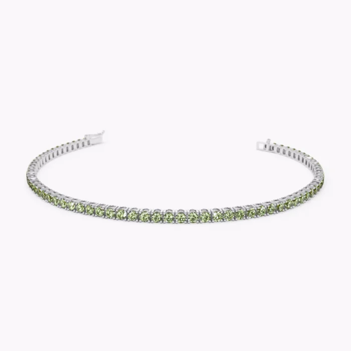 優雅的 18k 純金網球手鍊,鑲有爪鑲橄欖石——打造永恆的美麗、清新的綠色光芒和精緻的精緻。